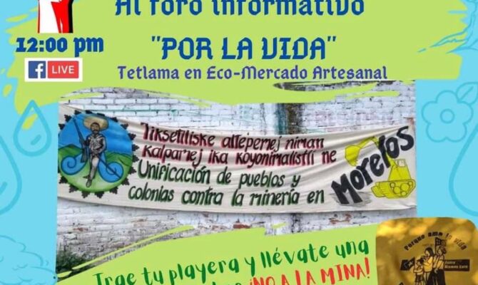 37 Edición Unificación de Pueblos y Colonias contra la Mineria en Morelos CONVOCA AL FORO INFORMATIVO «POR LA VIDA» TETLAMA EN ECO-MERCADO ARTESANAL Artesanias, productos organicos, resntaurante, chapoteadero, mesa de trueque. Domingo…