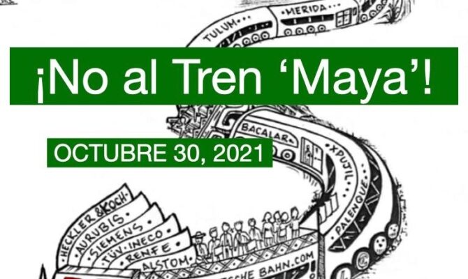 Aufruf/ Convocatoria/ Call for Action – 30.10.2021, 10h (Mexiko), 16h (Central-Europe). Globaler Aktionstag gegen Ökozid & Vertreibung: NEIN zum „Maya“ Zug und der kolonialen Schiene der Deutschen Bahn