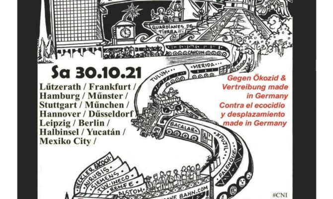 Convocatoria /Aufruf/ Call for Action – 30.10.2021, 10h (Mexiko), 16h (Central-Europe). Dia de acción global contra el ecocidio y desplazamiento: NO al Tren «Maya» y al tren colonial de la Deutsche Bahn.