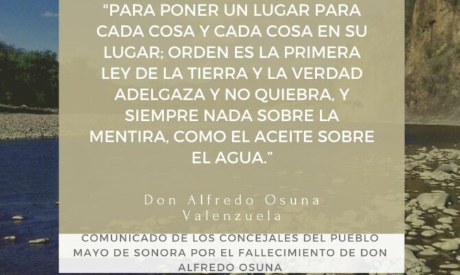 Comunicado de los concejales del pueblo mayo de Sonora por el fallecimiento de Don Alfredo Osuna.