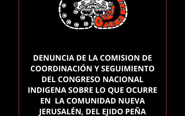 DENUNCIA DE LA COMISION DE COORDINACIÓN Y SEGUIMIENTO DEL CONGRESO NACIONAL INDIGENA SOBRE LO QUE OCURRE EN LA COMUNIDAD NUEVA JERUSALÉN, DEL EJIDO PEÑA LIMONAR.