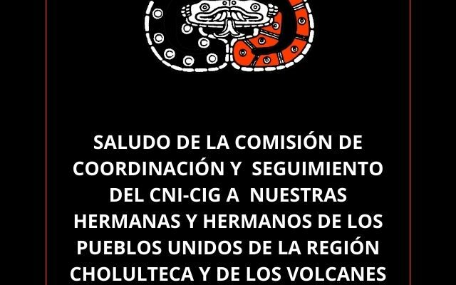 Saludo de la Comisión de coordinación y seguimiento del CNI-CIG a nuestras hermanas y hermanos de los Pueblos Unidos de la Región Cholulteca y de los Volcanes y al pueblo San Mateo Cuanalá , Puebla.