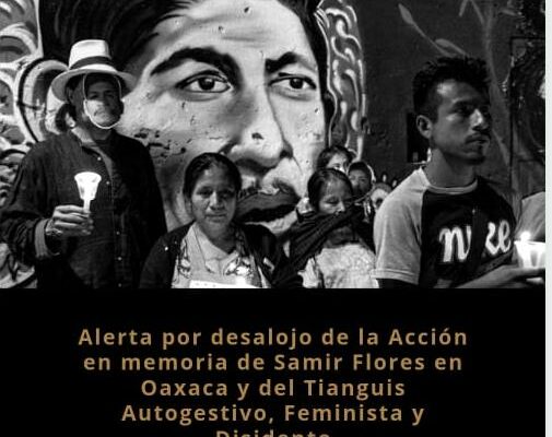 Alerta por desalojo de la Acción en memoria de Samir Flores en Oaxaca y del Tianguis Autogestivo, Feminista y Disidente.