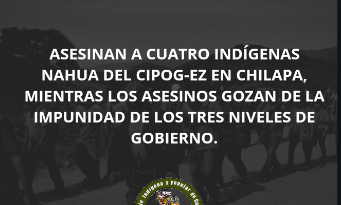 Asesinan a cuatro indígenas Nahua del CIPOG-EZ en Chilapa, mientras los asesinos gozan de la impunidad de los tres niveles de gobierno.