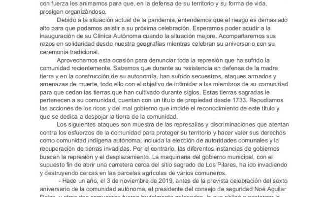 Carta de solidaridad a Azqueltán por sus 7 años de AUTONOMÍA