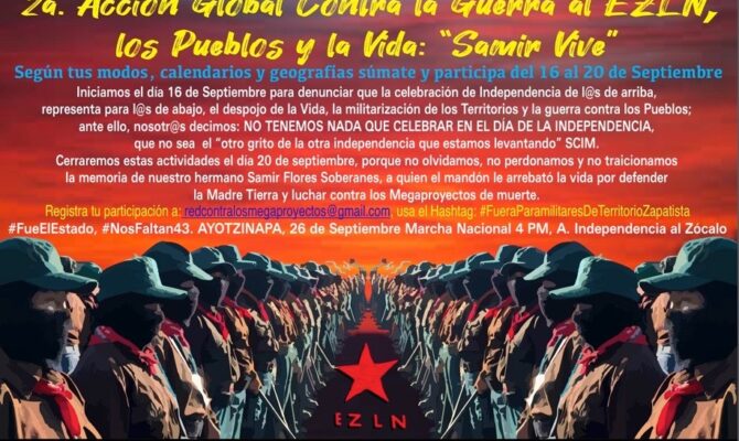 2ª Acción Global contra la Guerra al EZLN, los Pueblos y la Vida: “Samir Vive” Del 16 al 20 de septiembre. Según tus modos, calendarios y geografías, súmate y participa. Al CCRI…
