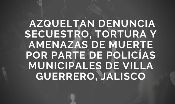 AZQUELTAN DENUNCIA SECUESTRO, TORTURA Y AMENAZAS DE MUERTE POR PARTE DE POLICÍAS MUNICIPALES DE VILLA GUERRERO, JALISCO