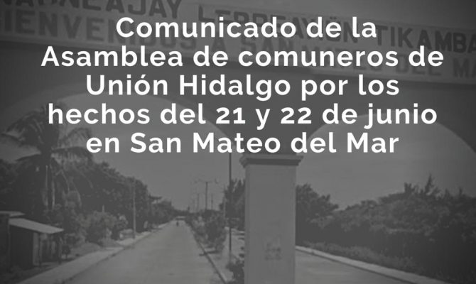 Comunicado de la Asamblea de comuneros de Unión Hidalgo por los hechos del 21 y 22 de junio en San Mateo del Mar