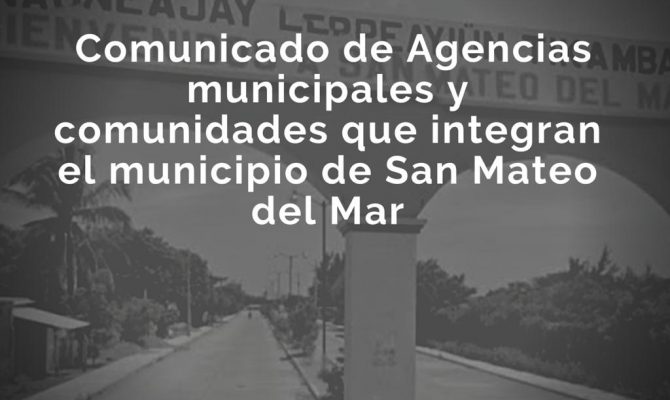 COMUNICADO DE AGENCIAS MUNICIPALES Y COMUNIDADES QUE INTEGRAN EL MUNICIPIO DE SAN MATEO DEL MAR