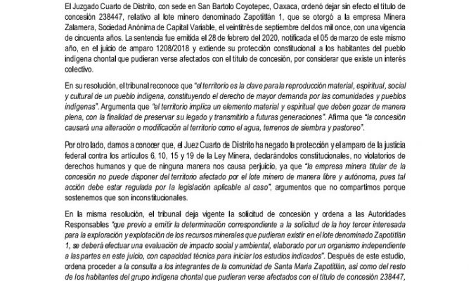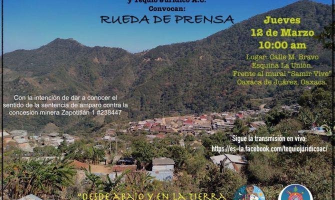 Convocatoria a rueda de prensa por la sentencia de amparo contra la concesión minera Zapotitlán