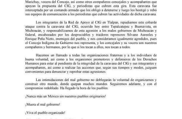 A LAS COMUNIDADES INDÍGENAS DE NUESTRO PAÍS. A LOS PUEBLOS DE MÉXICO Y DEL MUNDO. AL GOBIERNO MUNICIPAL, ESTATAL Y FEDERAL. A LOS MEDIOS DE COMUNICACIÓN NACIONALES E INTERNACIONALES. A LOS ORGANISMOS…