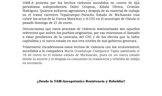 Exigencia de Justicia para Sergio Rivera Hernández, por parte de comunidades indígenas de la Sierra Negra y del Movimiento Agrario Indígena Zapatista.