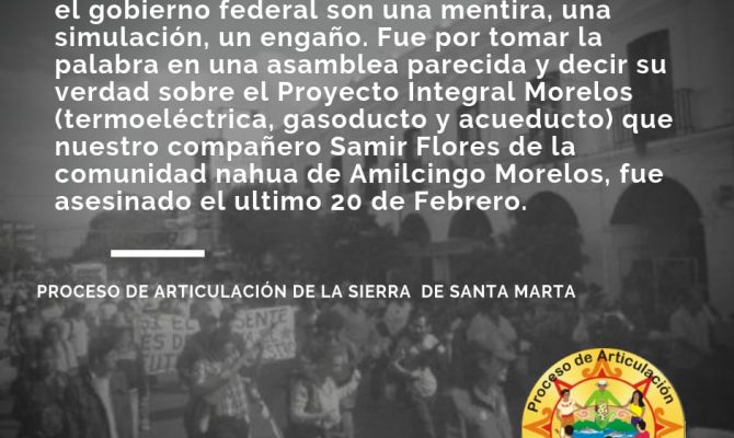 En el Marco de la Jornada Global por la defensa de la vida y por nuestros territorios -SAMIR FLORES VIVE – que fue convocada por el Concejo Nacional Indígena de Gobierno ,…