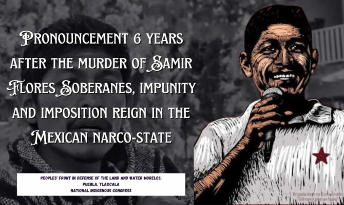 Pronouncement 6 years after the murder of Samir Flores Soberanes, impunity and imposition reign in the Mexican narco-state