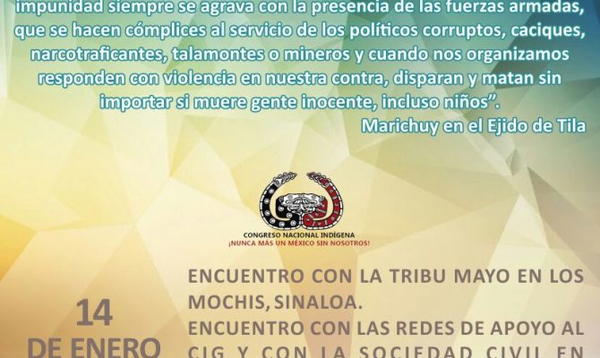 A las tribus, pueblos, barrios y naciones del Congreso Nacional Indígena Al Concejo Indígena de Gobierno y nuestra vocera Marichuy A la Sexta Nacional e Internacional A la Red contra la Represión…