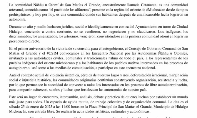 Convocan al 1er Encuentro Nacional por las Autonomías Ñähñu u Otomíes en el Oriente Michoacano #CSIM