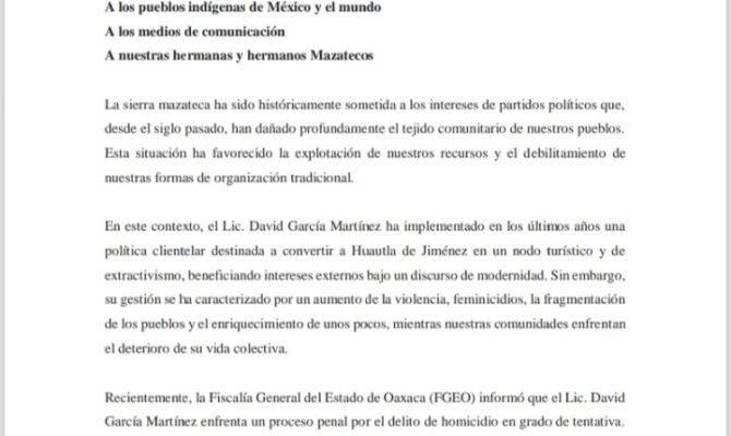 Sierra Mazateca a 22 de enero del 2025 COMUNICADO A el Ejercito Zapatista de Liberación Nacional (EZLN) A el Congreso Nacional Indígena (CNI) A la opinión pública A los pueblos indígenas de…