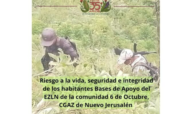 Denunciamos el riesgo a la vida, seguridad e integridad personal de los habitantes Bases de Apoyo del EZLN de la comunidad 6 de Octubre, CGAZ de Nuevo Jerusalén