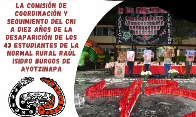 PRONUNCIAMIENTO DE LA COMISIÓN DE COORDINACIÓN Y SEGUIMIENTO DEL CNI A DIEZ AÑOS DE LA DESAPARICIÓN DE LOS 43 ESTUDIANTES DE LA NORMAL RURAL RAÚL ISIDRO BURGOS DE AYOTZINAPA