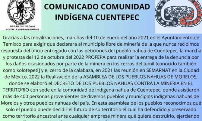 COMUNICADO DE LA COMUNIDAD INDÍGENA DE CUENTEPEC, MORELOS.