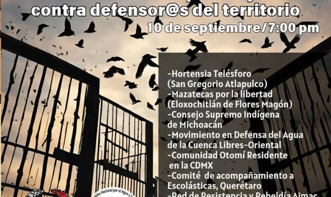 Martes, 10 de septiembre/ 7:00 pm En seguimiento a los acuerdos de la 5a Asamblea Nacional por el Agua y la Vida, que se llevó a cabo los días 17 y 18…