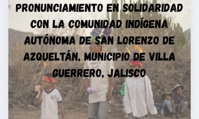 A las organizaciones de derechos humanos A los colectivos solidarios con la lucha de Azqueltán A los medios de comunicación La comunidad indígena, wixárika y tepehuana, de San Lorenzo de Azqueltán, municipio…