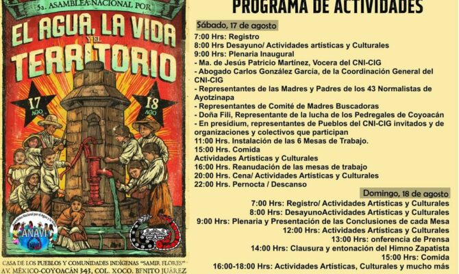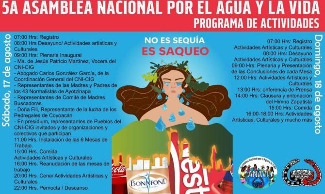 INFORMACIÓN IMPORTANTE PARA LA 5A ASAMBLEA NACIONAL POR EL AGUA, LA VIDA Y EL TERRITORIO