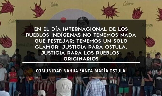 EN EL DÍA INTERNACIONAL DE LOS PUEBLOS INDÍGENAS NO TENEMOS NADA QUE FESTEJAR; TENEMOS UN SOLO CLAMOR: JUSTICIA PARA OSTULA, JUSTICIA PARA LOS PUEBLOS ORIGINARIOS