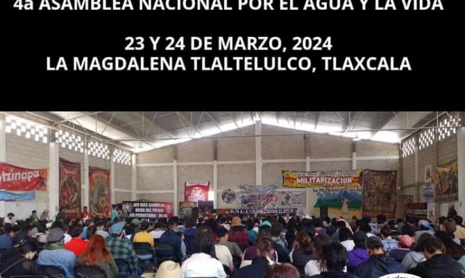 4ª ASAMBLEA NACIONAL por el AGUA Y LA VIDA 23 y 24 de Marzo de 2024. La Magdalena Tlaltelulco, Tlaxcala DECLARACIÓN EN DEFENSA DEL AGUA, LA TIERRA Y LA VIDA AL CCRI…