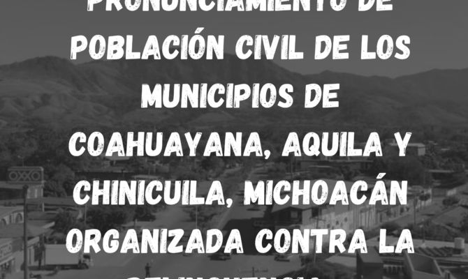 PRONUNCIAMIENTO DE POBLACIÓN CIVIL DE LOS MUNICIPIOS DE COAHUAYANA, AQUILA Y CHINICUILA, MICHOACÁN ORGANIZADA CONTRA LA DELINCUENCIA