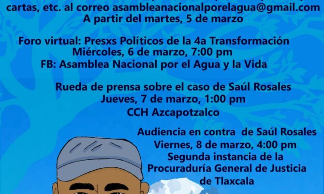 Preso político en Tlaxcala Jueves, 7 de marzo, 1:00 pm Casa de los pueblos y comunidades indígenas «Samir Flores Soberanes» NOTA: por contingencia ambiental la rueda de prensa no se llevará a…