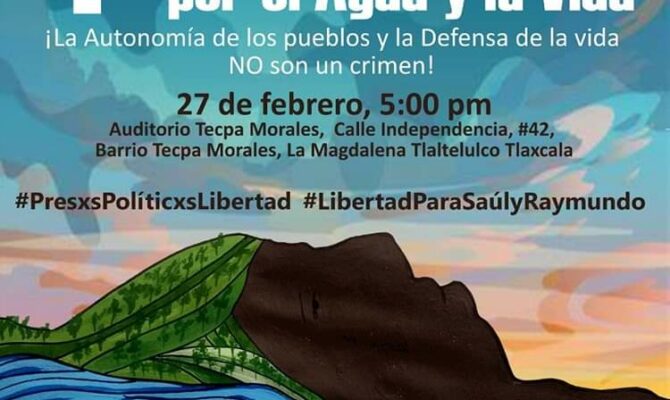 27 de febrero, 5:00 pm Auditorio Tecpa Morales, Calle Independencia #42, barrio Tecpa Morales, La Magdalena Tlaltelulco Tlaxcala Registro de medios de comunicación https://docs.google.com/forms/d/e/1FAIpQLSeINVGQRclxkfxBF_DU-zfNuGcCLEa8jUIF-6CwvTyxCU-63A/viewform?pli=1 ¡SÍ HAY AGUA, LA TIENEN SECUESTRADA! –…