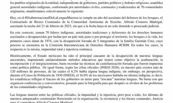 LAS LENGUAS MUEREN ENTRE LAS POLÍTICAS OFICIALES, LA IMPUNIDAD Y LA INJUSTICIA AL PUEBLO DE MÉXICO Y MICHOACÁN A LOS MEDIOS DE COMUNICACIÓN A LOS PUEBLOS ORIGINARIOS AL ESTADO MEXICANO Comunidades Originarias…