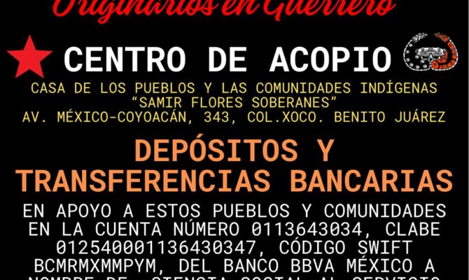 LLAMADO A LA SOLIDARIDAD DESDE LA CASA DE LOS PUEBLOS Y COMUNIDADES INDÍGENAS “SAMIR FLORES SOBERANES”, Y ATENDIENDO EL LLAMADO QUE HACE EL EZLN Y EL CNI, PARA SOLIDARIZARSE CON NUESTROS HERMANOS ORIGINARIOS EN GUERRERO, QUIEN HAN SIDO GRAVEMENTE AFECTADOS POR EL HURACÁN OTIS