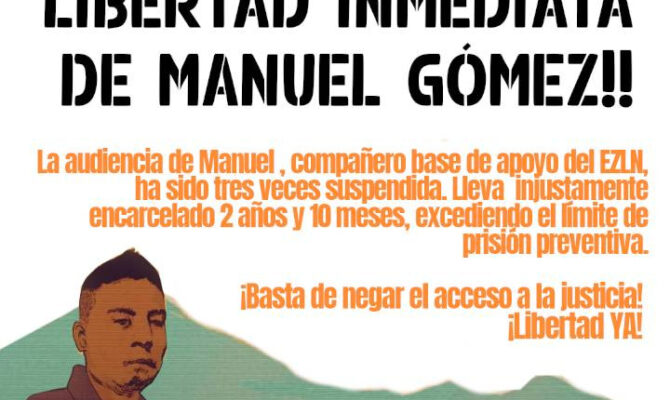 La represión del mal gobierno tiene preso injustamente desde hace 2 años y 10 meses a nuestro compañero Base de Apoyo Zapatista Manuel Gómez Vázquez. Fue detenido por autoridades oficiales y…